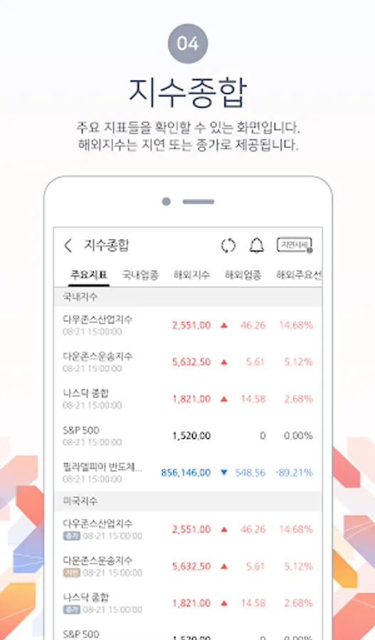 ※ Mini Home: Domestic/overseas index, balance on any screen