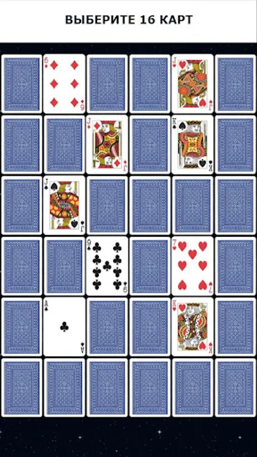 Important!!! When guessing, ask just one question. If you want to know the answer to another question, you need to make a new deal of cards.