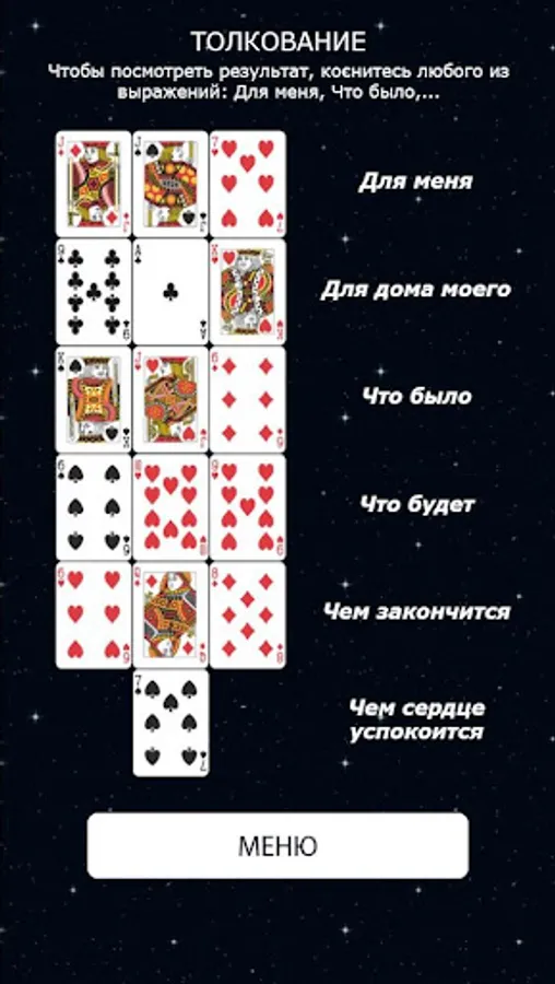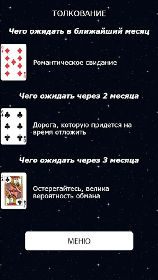 The results in our application are as truthful as possible and close to real fortune telling on playing cards.
