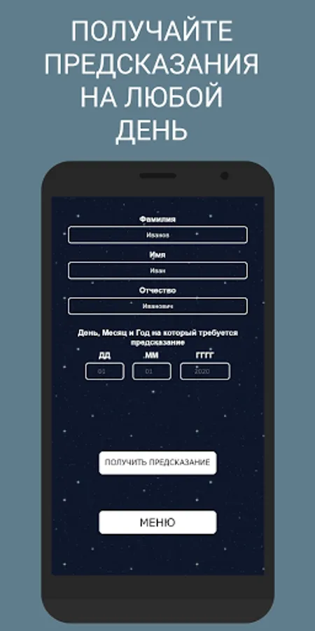 The main feature of our application is predictions for the YEAR, MONTH, and DAY. Numerology by date of birth and by your name allows you to accurately predict what events await you in the near future, as well as who you were in a past life.