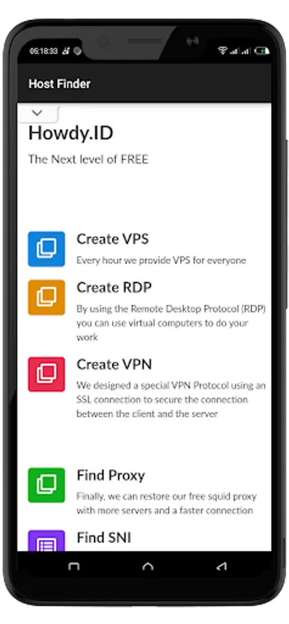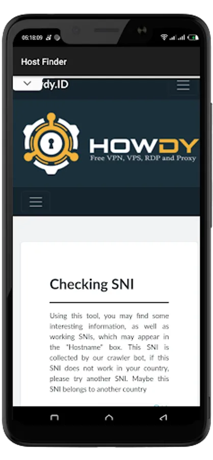 Howdy Host Finder is a simple app to help you easily find SNI hosts for VPN tunneling with VPN apps that Support SNI over SSH like Howdy VPN and Eugine Tunnel.