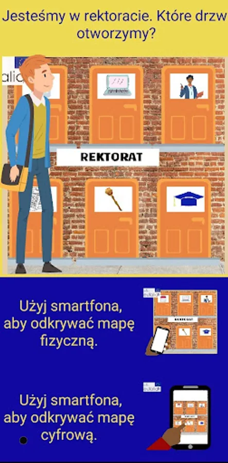 The Eulalia application was created to support Erasmus students in learning language and culture. [The Eulalia - University hybrid application will help you understand the functioning of universities in Poland]. The user will have to use a smartphone to search for certain points on the extended physical map (using the NFC antenna integrated with the device). Information on where to find the map can be obtained from info@smarted.it.