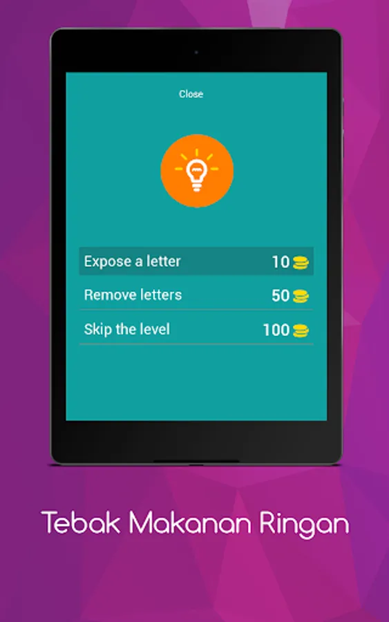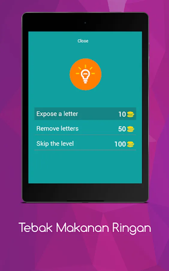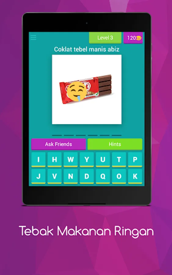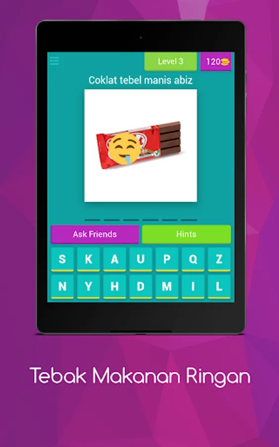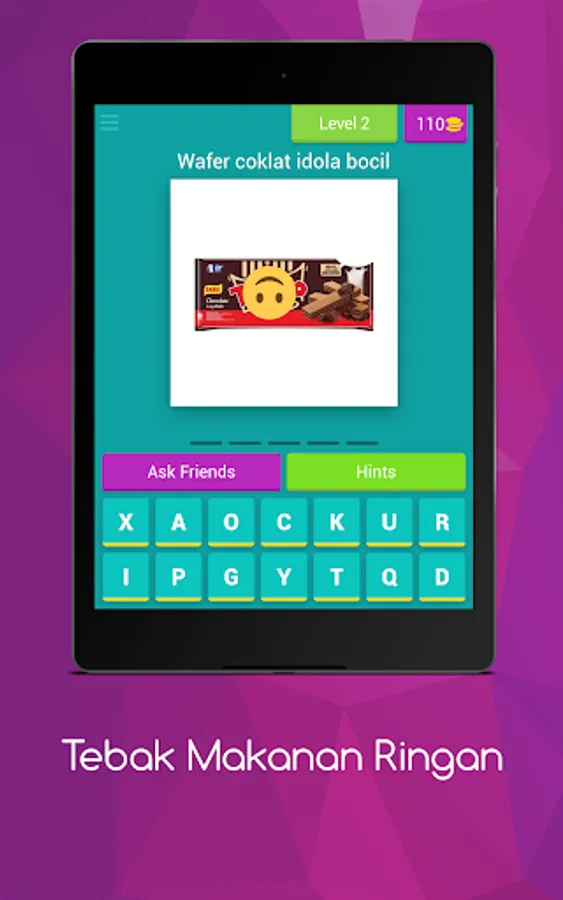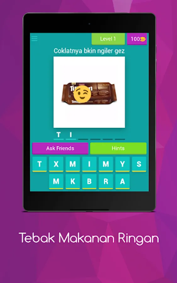 Tebak Makanan Ringan mempunyai 100 pertanyaan dari yang termudah hingga tersulit untuk kamu tebak dan kamu bisa memainkan permainan ini secara, GRATIS!