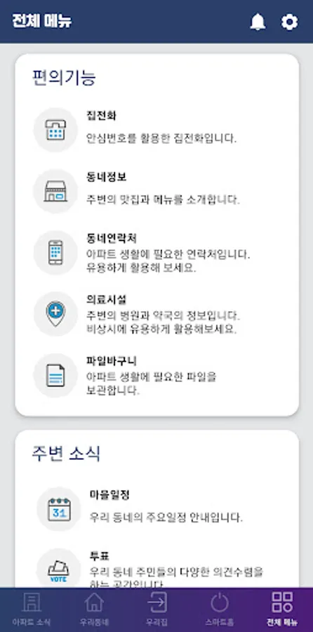 This is a smart Daelim apartment mobile application. It adds convenience to our family's life, such as parking management, community access management, safety of our children, and home IoT in the home.