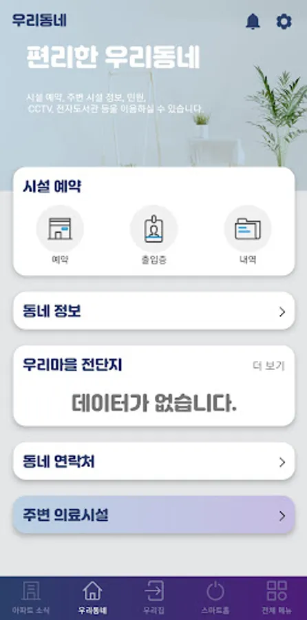 It is a smart skychae apartment mobile application. It adds convenience to the life of our family, such as parking management, community access management, child safety, and home IoT.