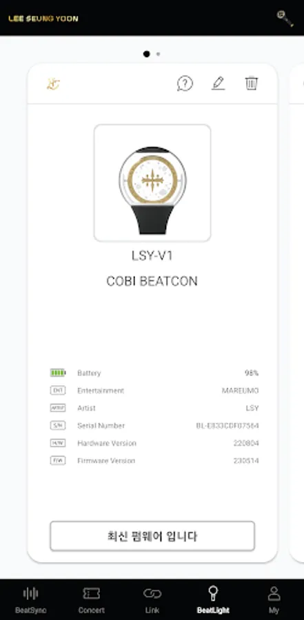- Manage your own light stick with the light stick status and the latest software version upgrade.