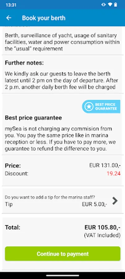 • Book your berth online with few clicks and pay with your credit card.