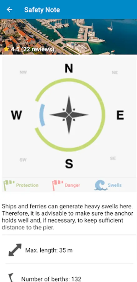 mySea has information not only on berths, but also on fuel stations, cranes, slipways, nautical repairers, supermarkets, restaurants, beaches, chandlers, yacht charters, doctors, hospitals, tourist attractions, and more. In short: everything of interest for boaters.