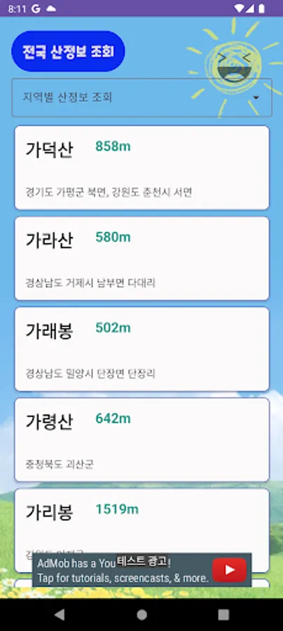 You can view information on mountains (national mountain information, regional mountain information, maps, details) using open API.