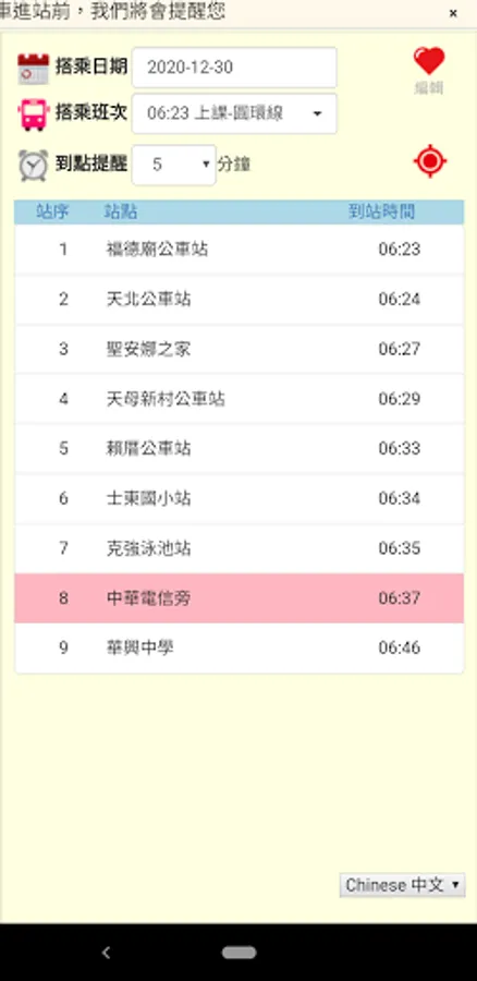 ※Click on the alarm clock icon to the right of the station name to activate the reminder function