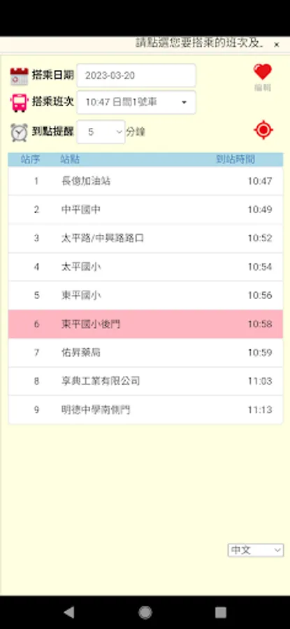 ※Click the alarm clock icon on the right side of the station name to start the point reminder function