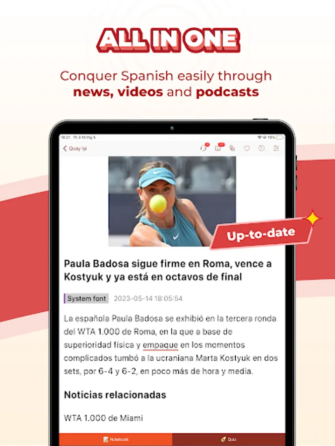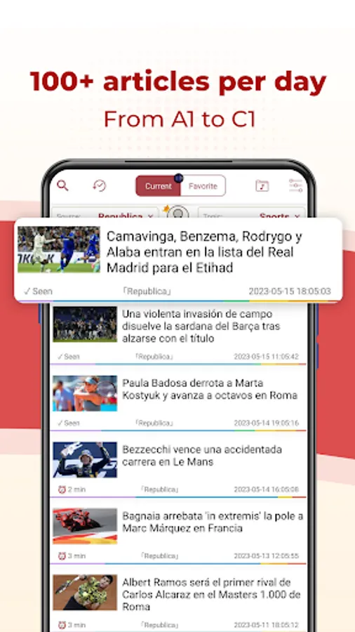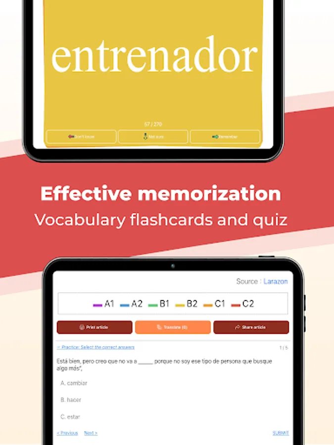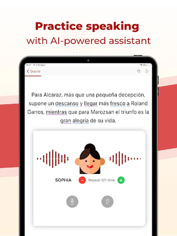 With a variety of the latest Spanish articles/news, divided from basic to advanced, this will be an effective application to learn Spanish language for millions of Spanish learners worldwide.