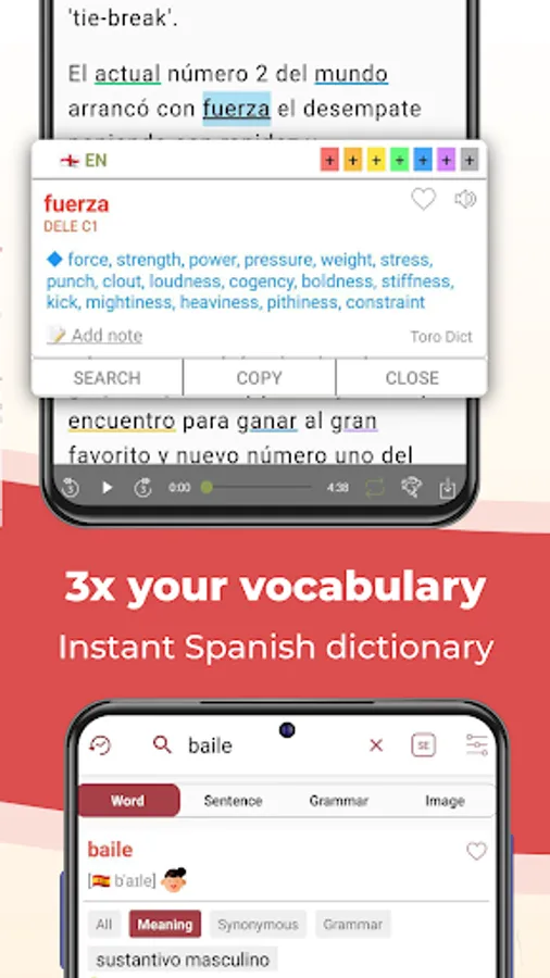 Form your learning habit in daily life with TODAI Easy Spanish News - The learning Spanish app through Spanish articles/videos/podcasts to boost your Spanish levels and confidently gain high scores on your DELE test.