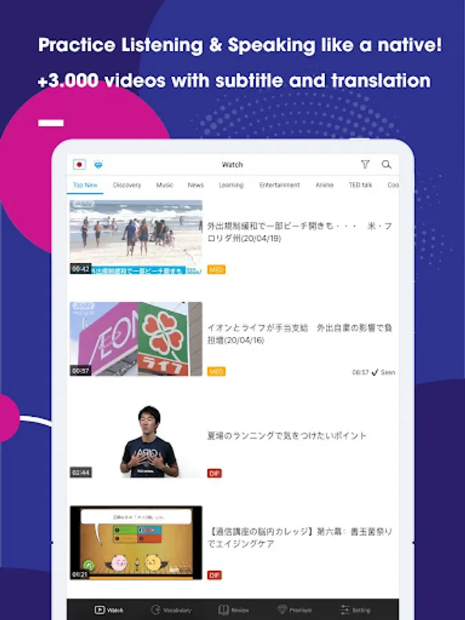 Conquer Japanese listening through engaging videos with subtitles and translation: