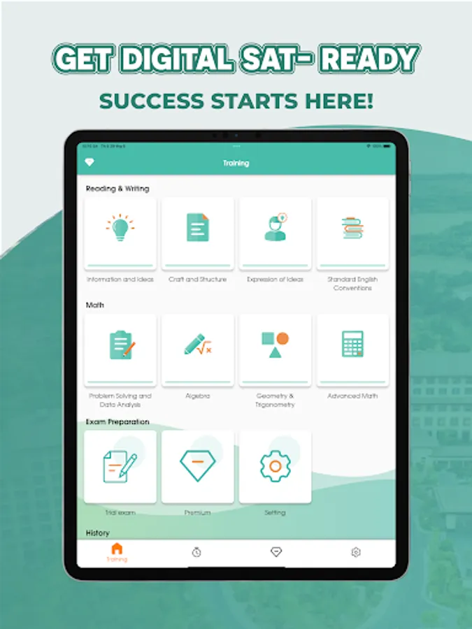 ✨ For the Math module, there are practice sections: Problem Solving and Data Analysis; Algebra; Geometry & Trigonometry; Advanced Math.