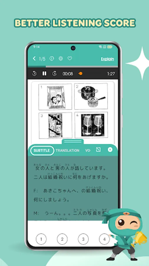 - Continuously updated tests for all levels, ranging from JLPT N5 to JLPT N1.