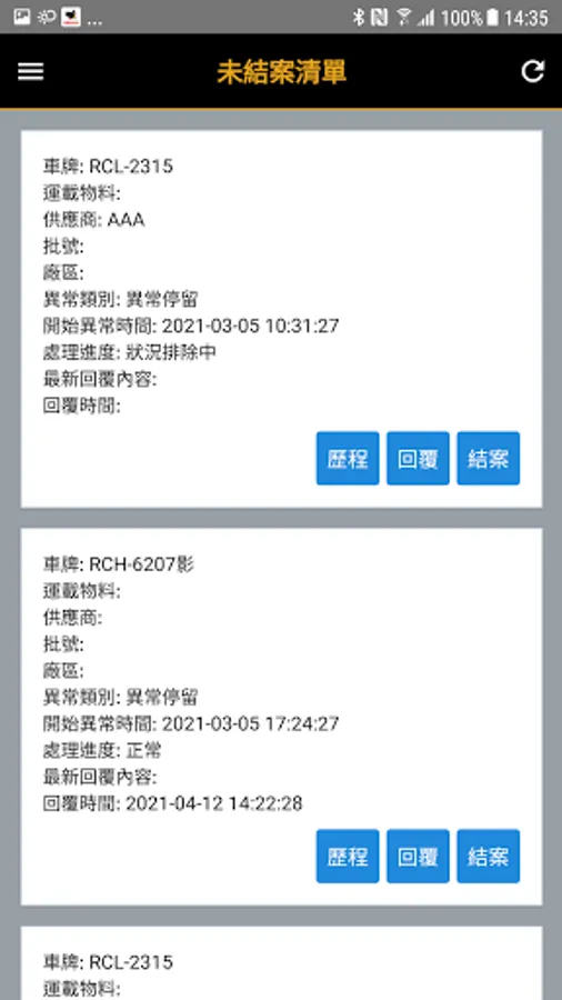 3. Display of the location of the abnormal vehicle