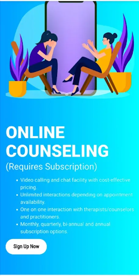 Provide online counseling and guidance to users suffering from anxiety, depression, stress and health issues. Our goal is to make users feel happy and good to live a fuller and richer life by connecting world class counselors/therapists to users worldwide.