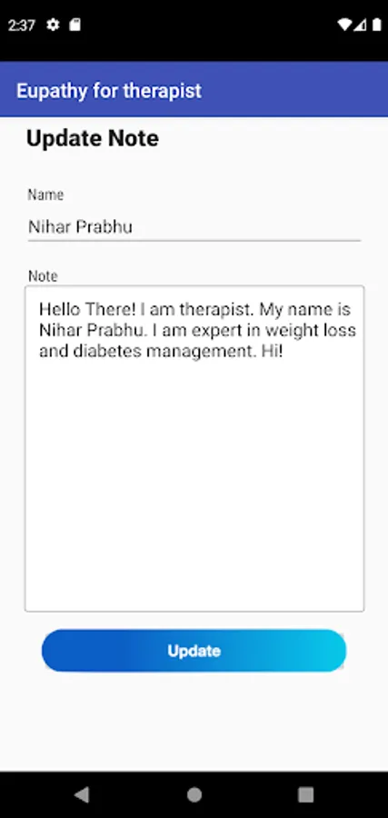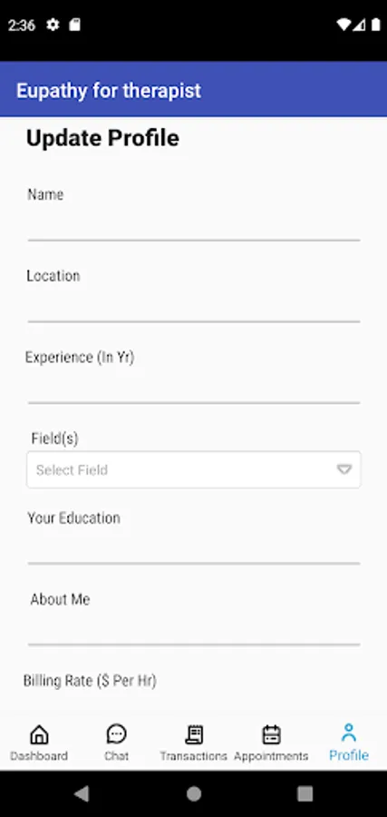 Through this app users can be counseled in following therapy fields (more fields will be added over time)