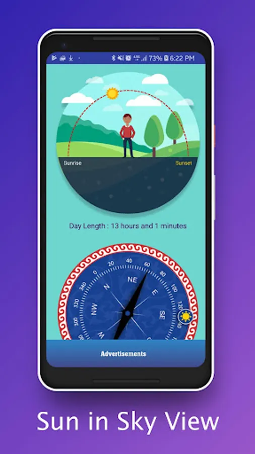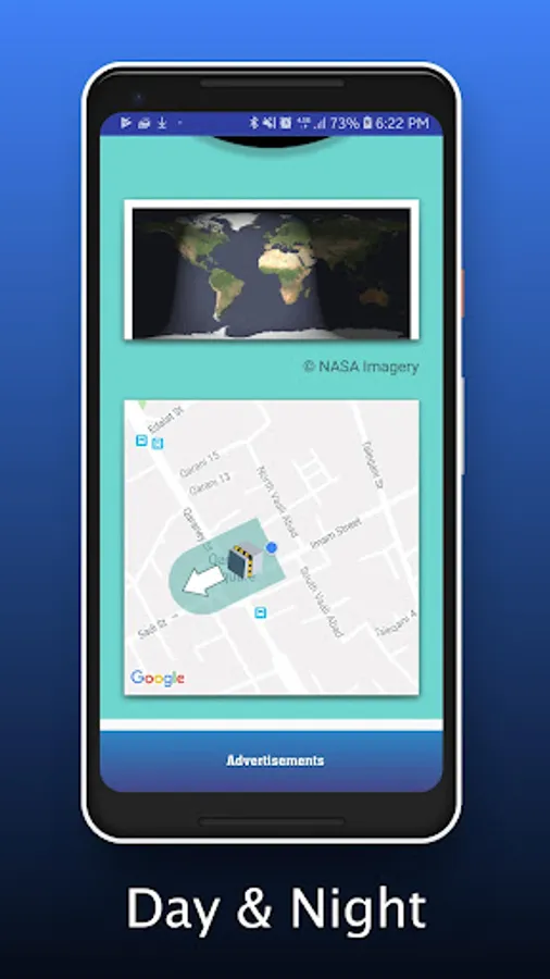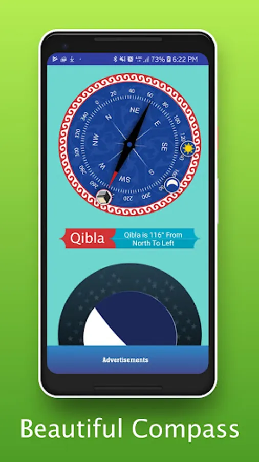 This application shows world day & night, moon, sun & moon phase, Qibla on a beautiful compass.