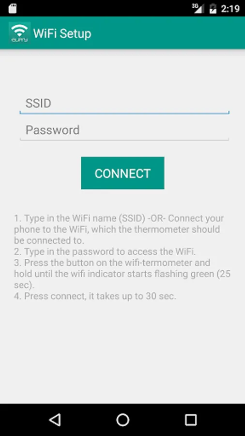 1. Type in the WiFi name (SSID) -OR- Connect your phone to the WiFi, which the thermometer should be connected to.