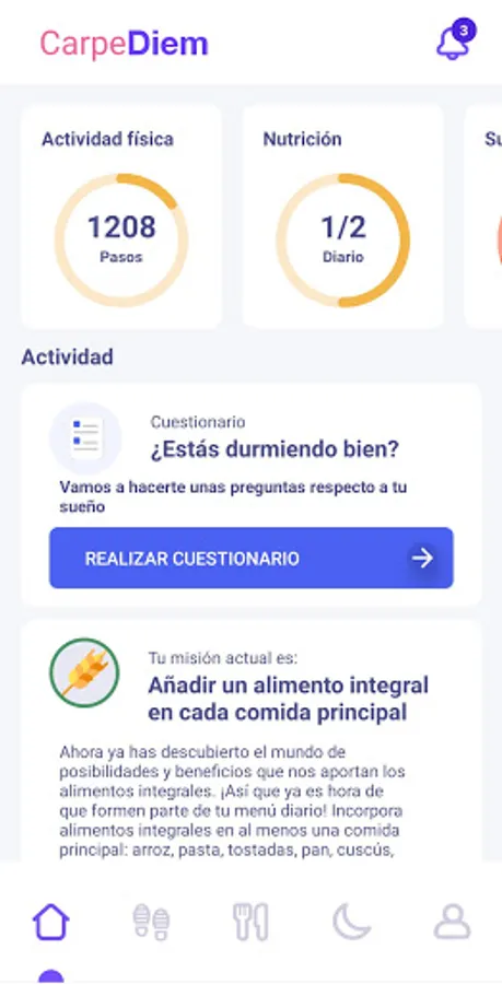 The CarpeDiem app provides intelligent and automatic support to people who want to follow a healthy lifestyle by monitoring their diet, physical activity and sleep.