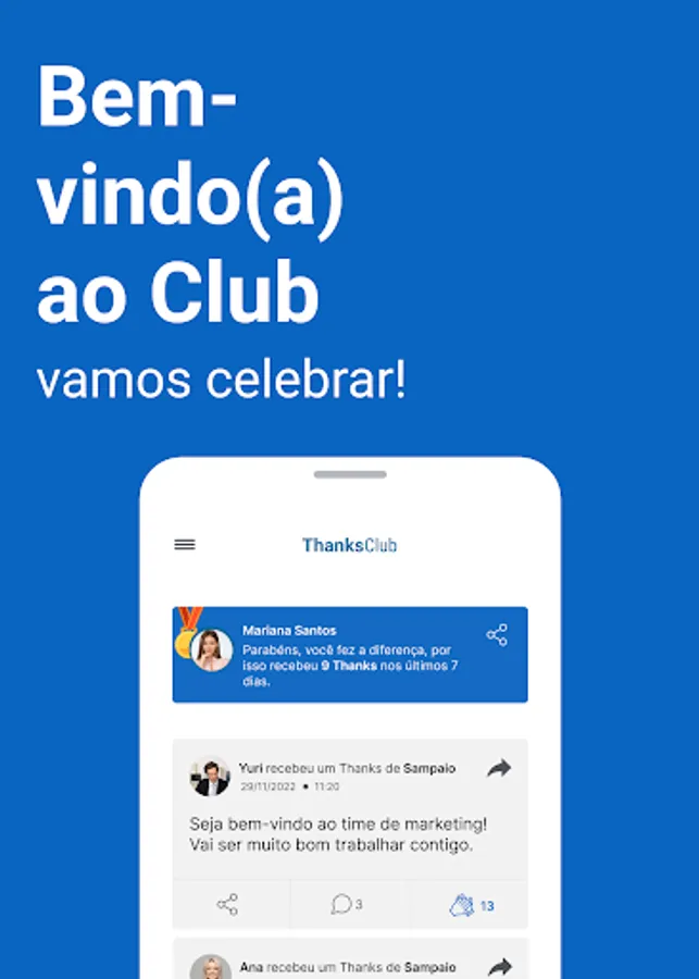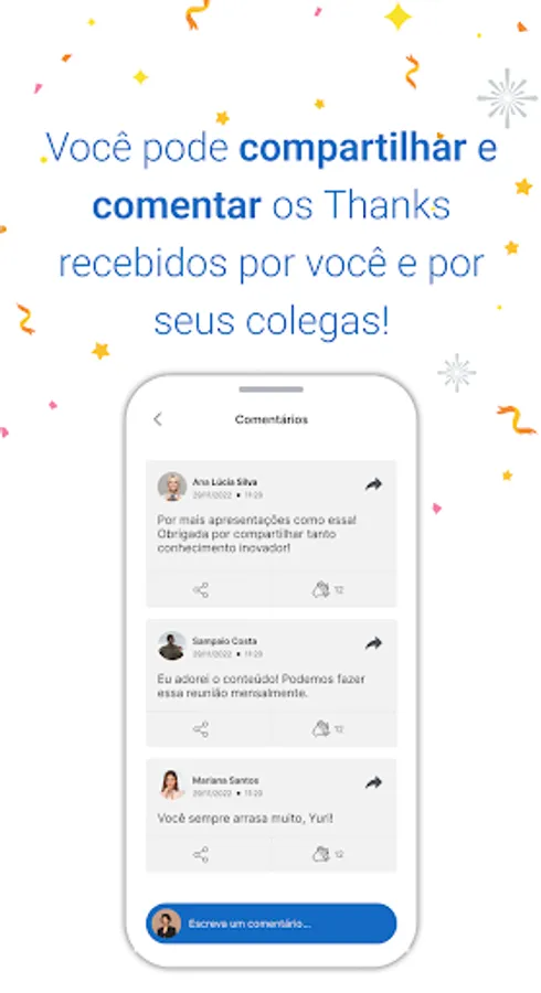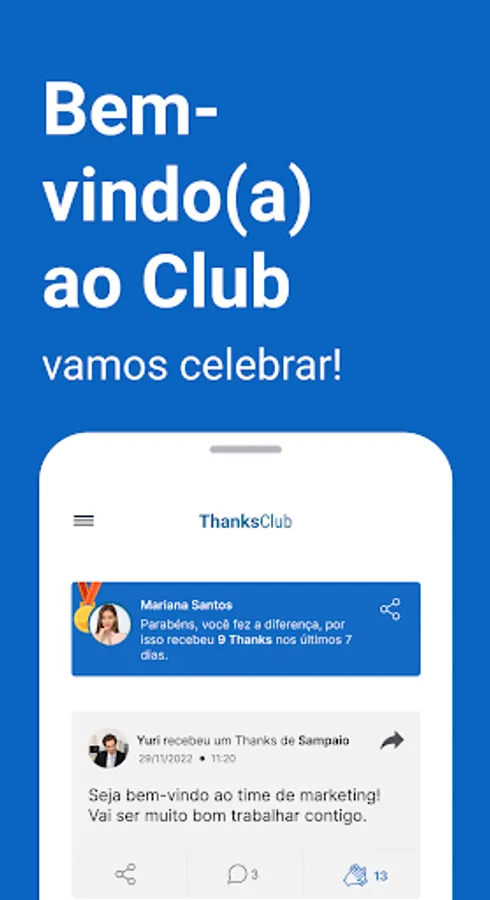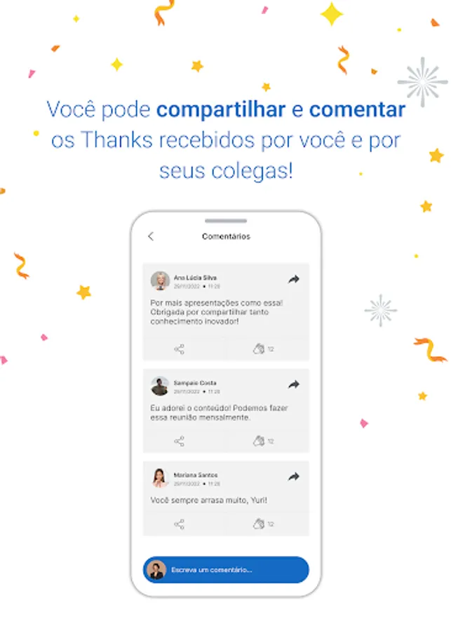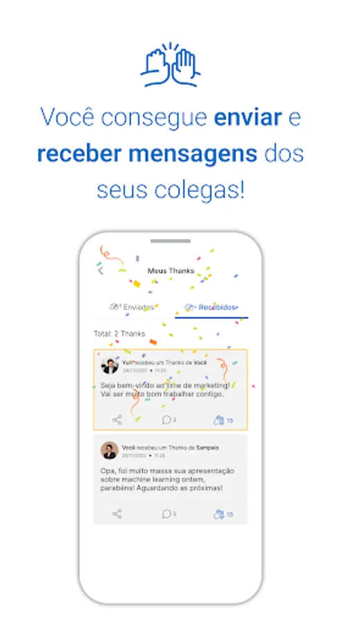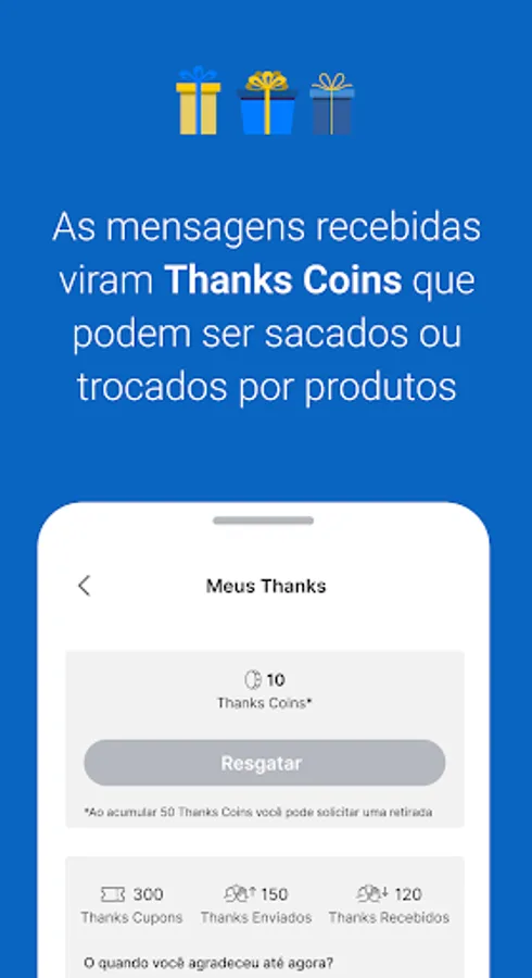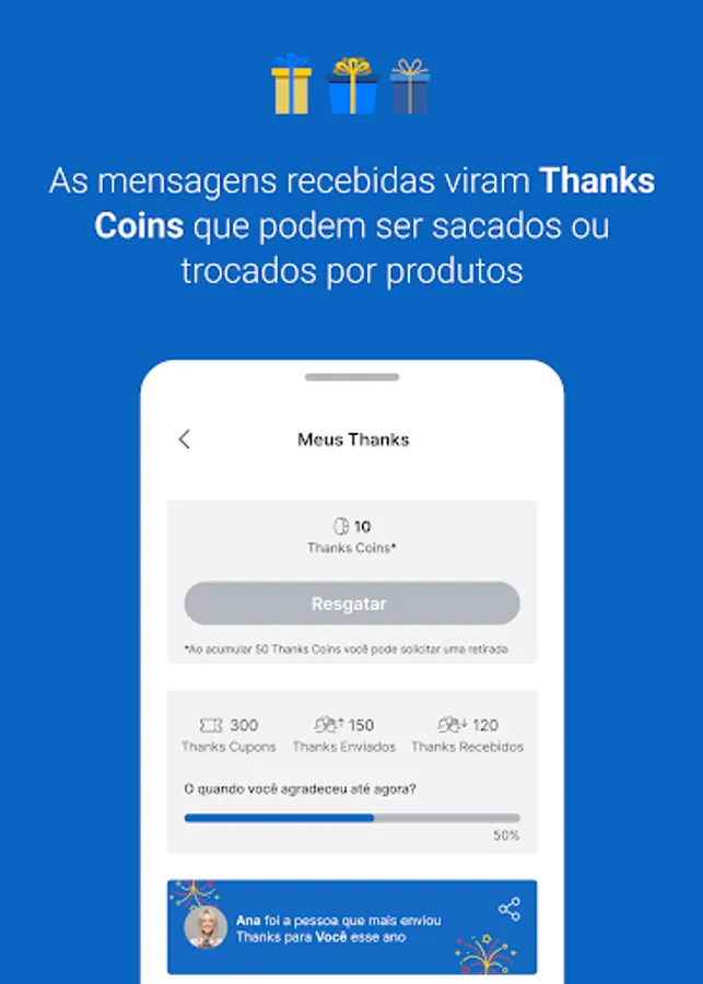Platform for companies that value people. The tool encourages the exchange of thanks or praise by sending thanks (currency). Periodically those who received thanks can exchange for products, services or even finance according to the rules of the contracting company.