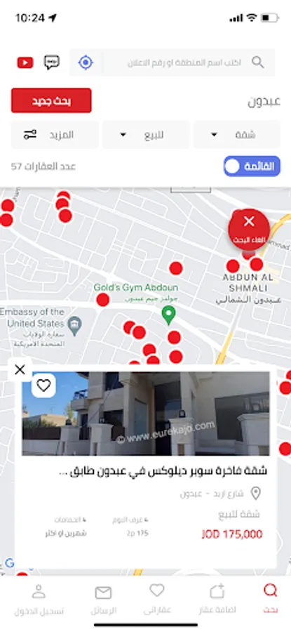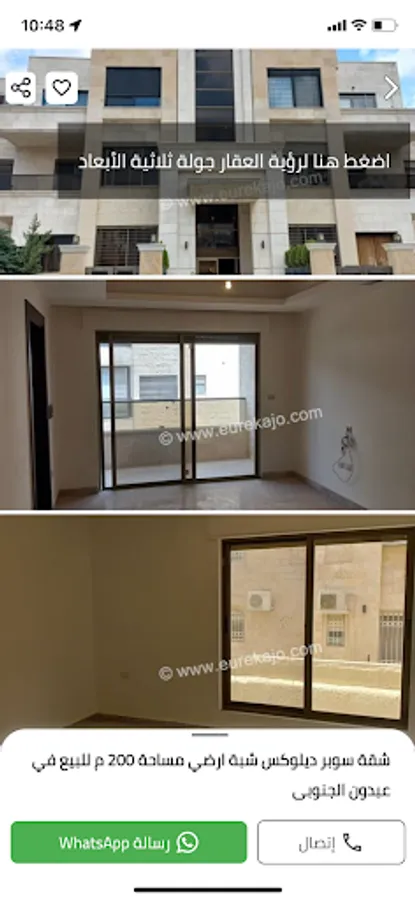 EurekaJO application is real estate application targeted at the Jordanian market. It is designed to allow the freedom for individuals (buyers or sellers) to connect with each other on a platform solely dedicated for the listing of real estate, whether it was apartments, villas, homes, houses, lands or farms.