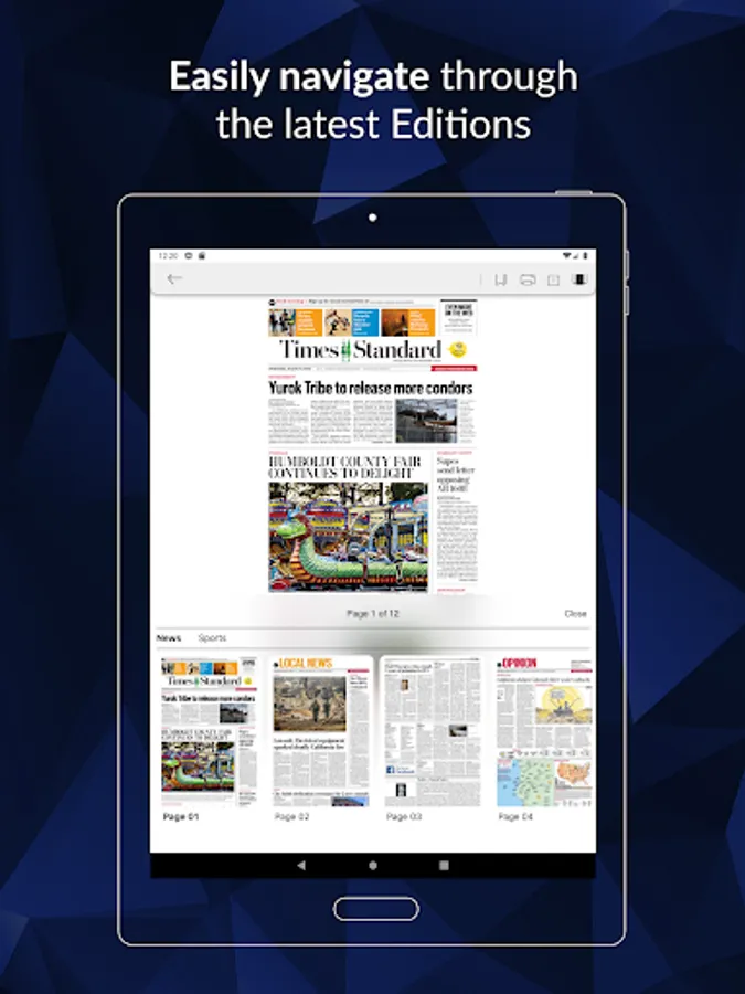 The Eureka Times-Standard presents the e-Edition, an exact digital replica of our print product. For users who prefer a more traditional feel and layout for their online news, the e-Edition features a sectional layout of the daily newspaper. The app is free to e-Edition readers.