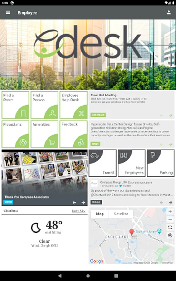 eDesk connects Eurest Services clients to their workplace, bringing all amenities and technology solutions available at their office to one, easy-to-use dashboard. Functionality is tailored to the user’s employer and location, elevating the workplace experience by simplifying the workday.