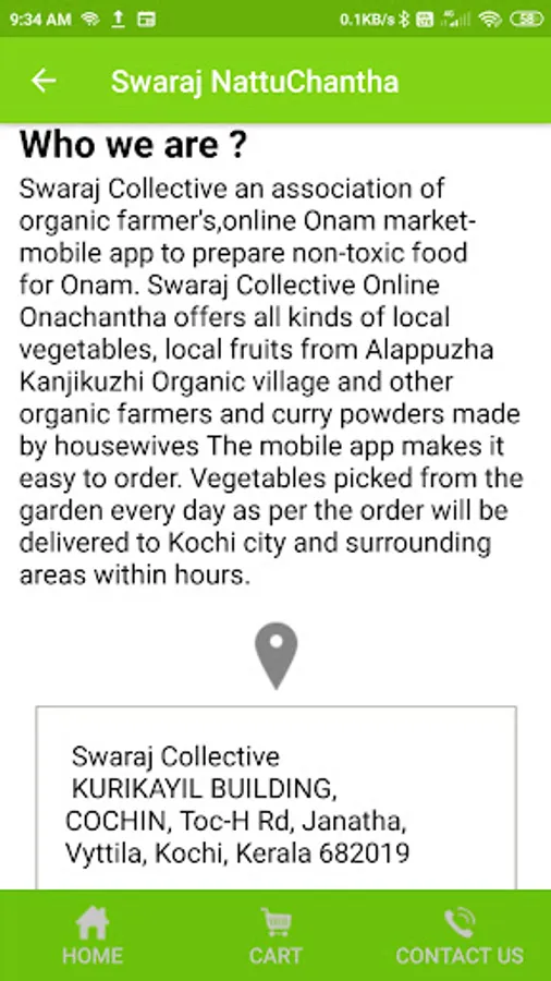 Swaraj Collective an association of organic farmer's,online Onam market-mobile app to prepare non-toxic food for Onam. Swaraj Collective Online Onachantha offers all kinds of local vegetables, local fruits from Alappuzha Kanjikuzhi Organic village and other organic farmers and curry powders made by housewives