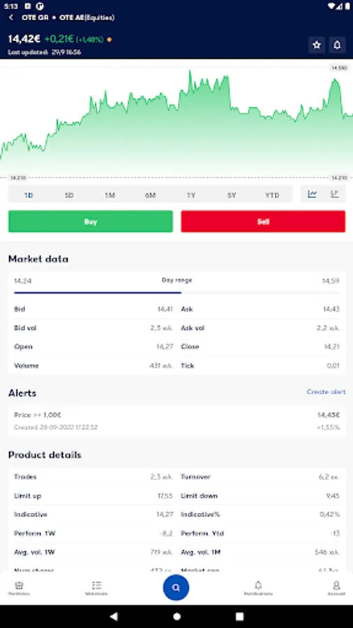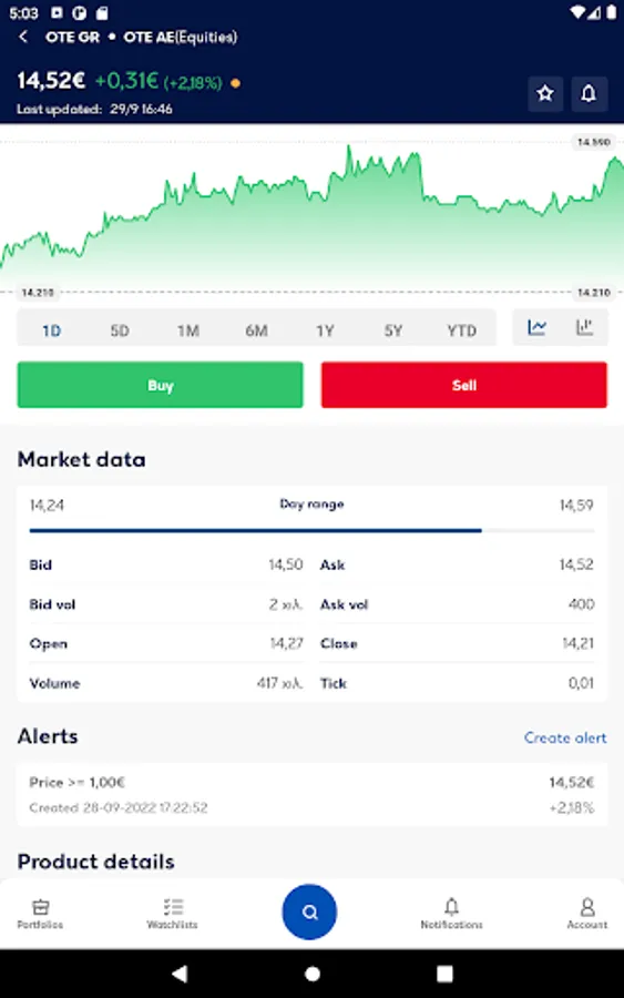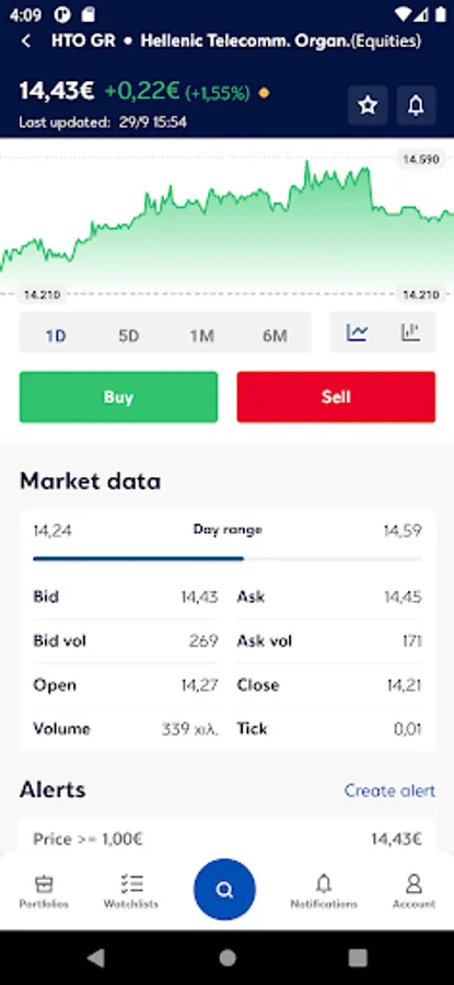 Users of Eurobank Trader App can monitor market through several tools -even if they are not currently login, due to push notifications they set for themselves.