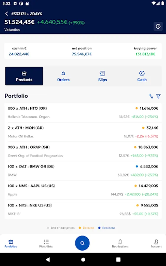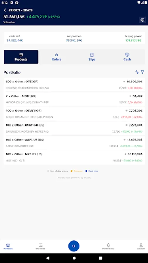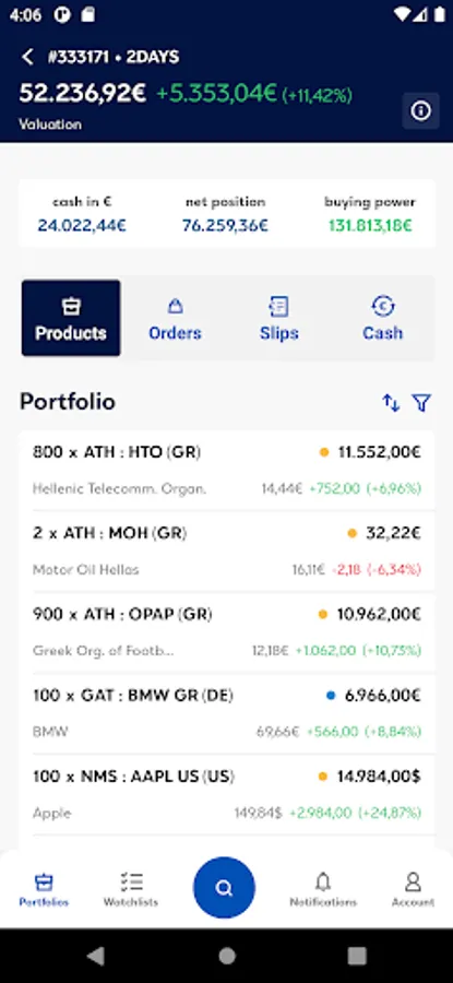 Eurobank Trader’s mobile app users, have the ability to view their assets (portfolio, cash amounts), their orders and trades, their statements, to Subscribe to real time price data, to exchange messages with Eurobank Trader support team, etc.