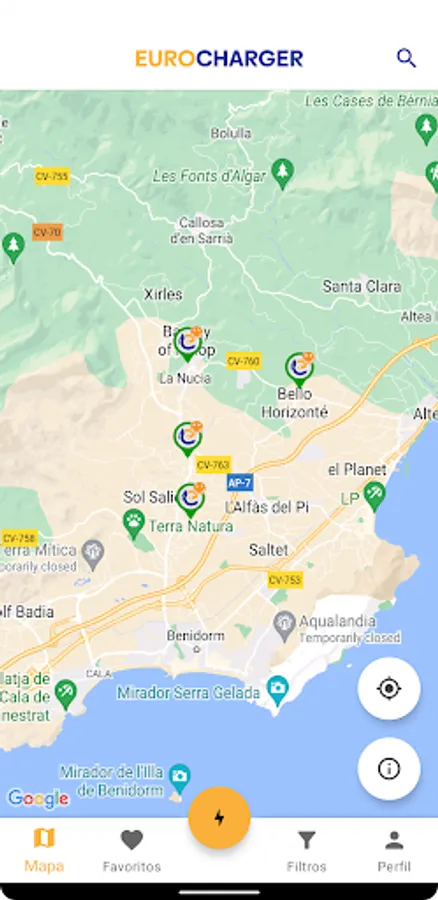 The Eurocharger app allows you to charge at all Eurocharger charging points.