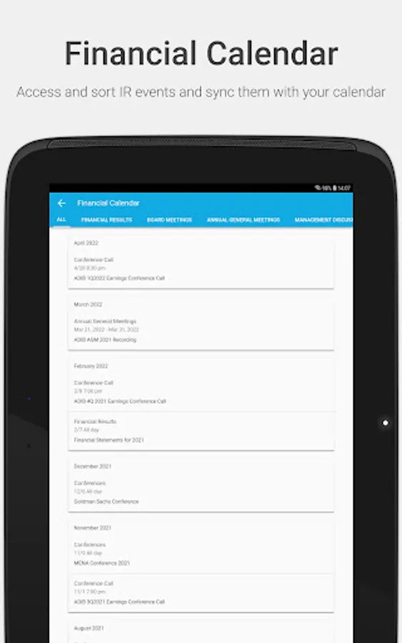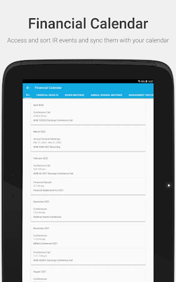 The Abu Dhabi Islamic Bank Investor Relations app will keep you up-to-date with the latest share price data, stock exchange and press releases, IR calendar events and much more.