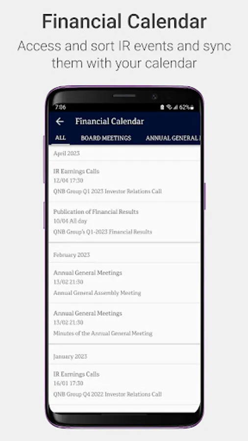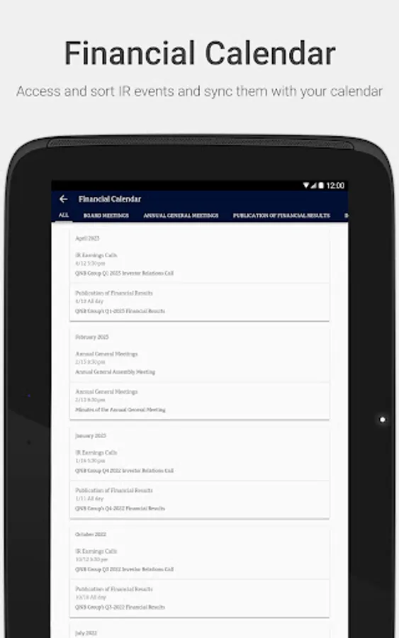 The Qatar National Bank Investor Relations app will keep you up-to-date with the latest share price data, stock exchange and press releases, IR calendar events and much more.