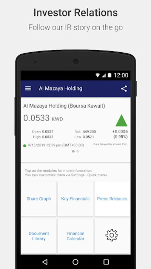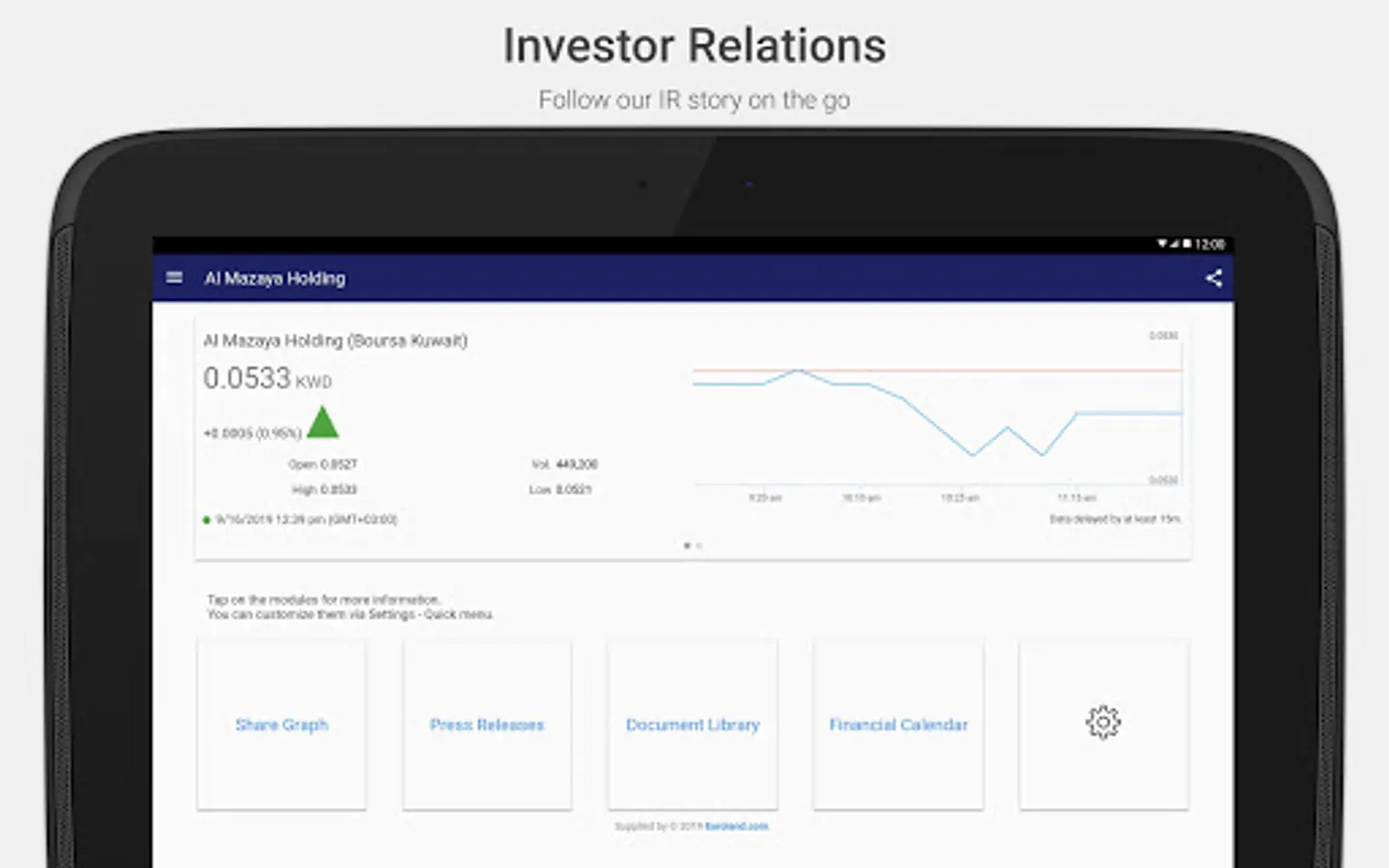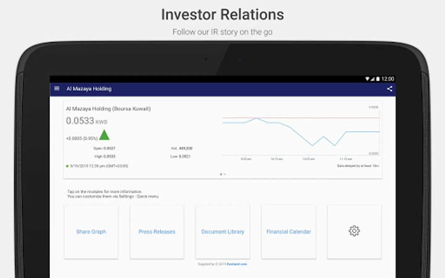 The Mazaya Investor Relations app will keep you up-to-date with the latest share price data, stock exchange and press releases, IR calendar events and much more.