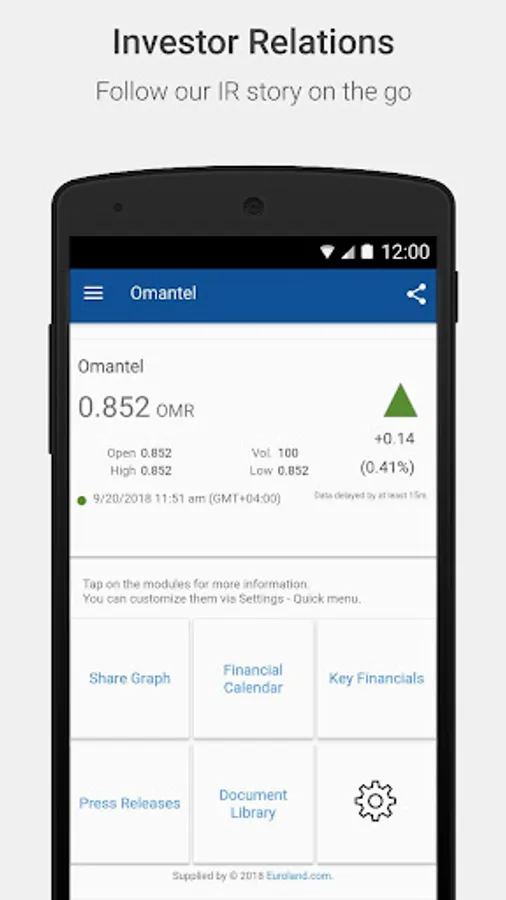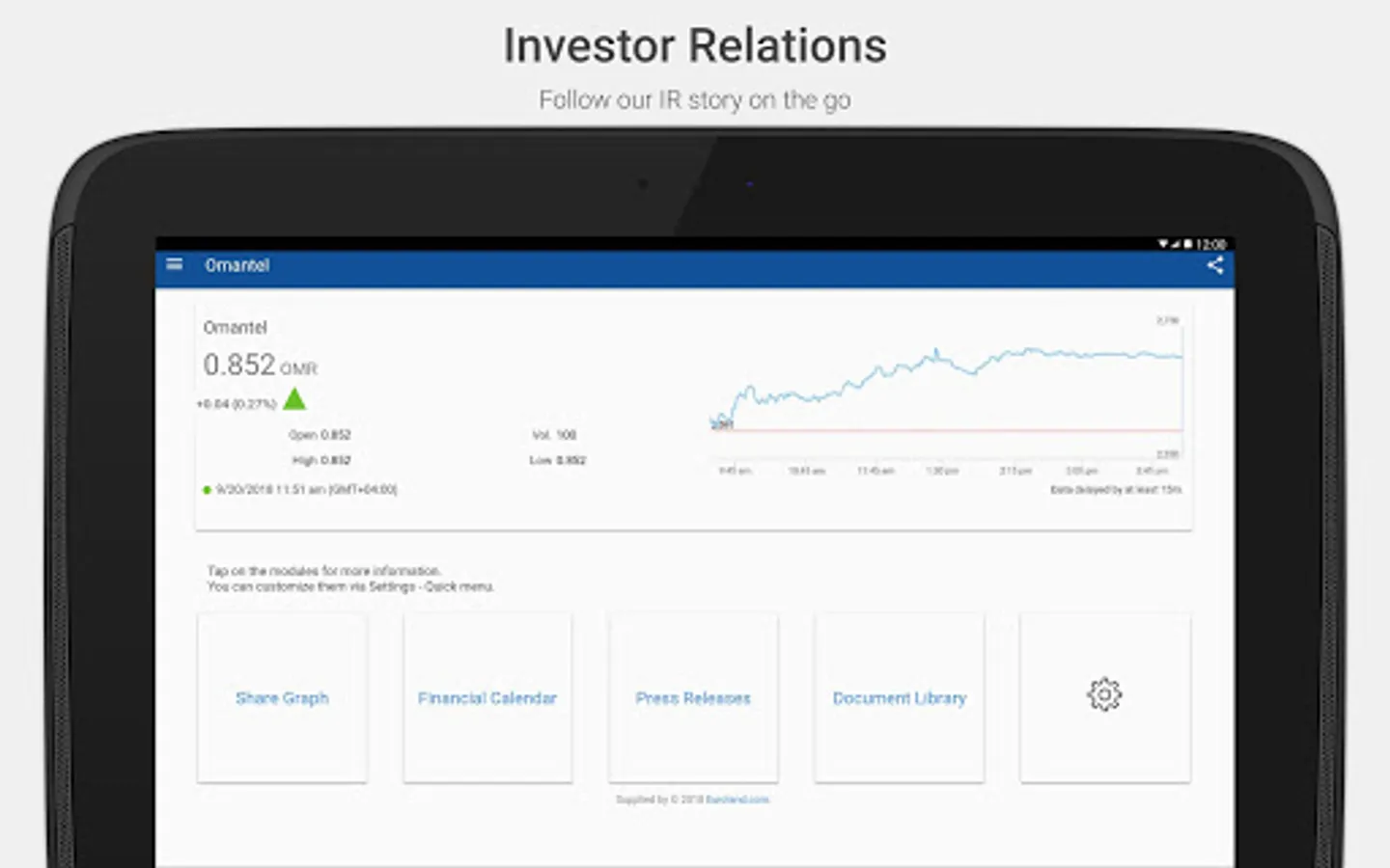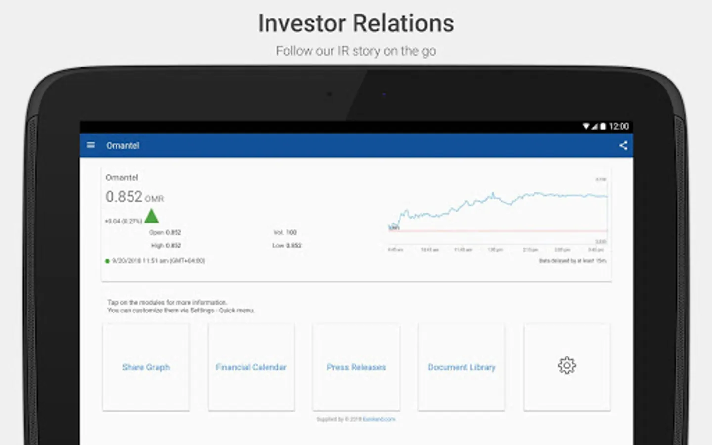 The Omantel Investor Relations app will keep you up-to-date with the latest share price data, stock exchange and press releases, IR calendar events and much more.