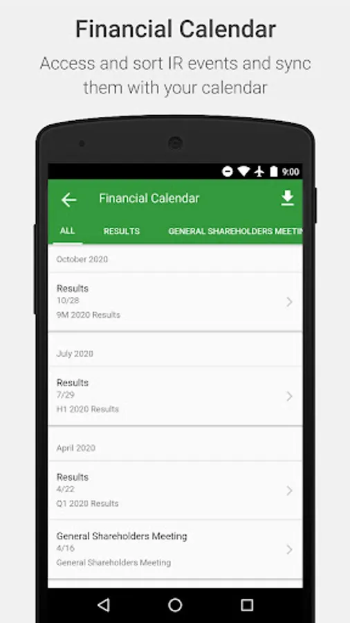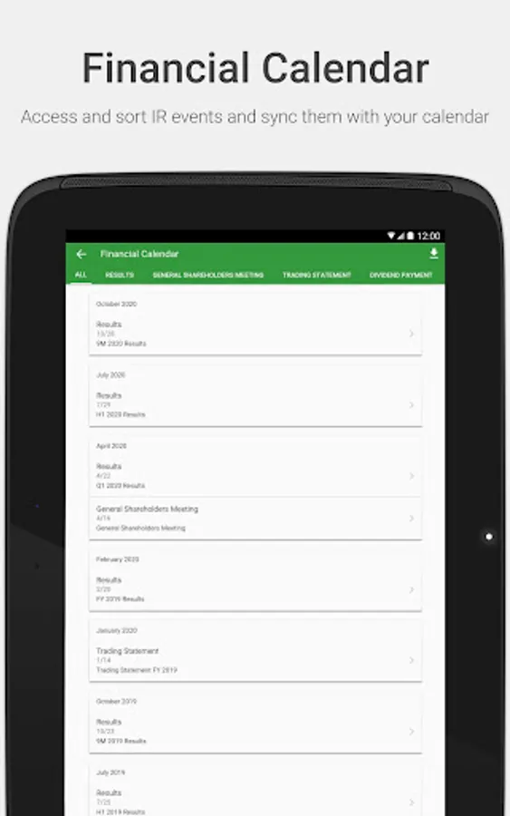 The App is the perfect tool to access the latest data regarding the Group, receive corporate releases and access financial reports and results presentations.
