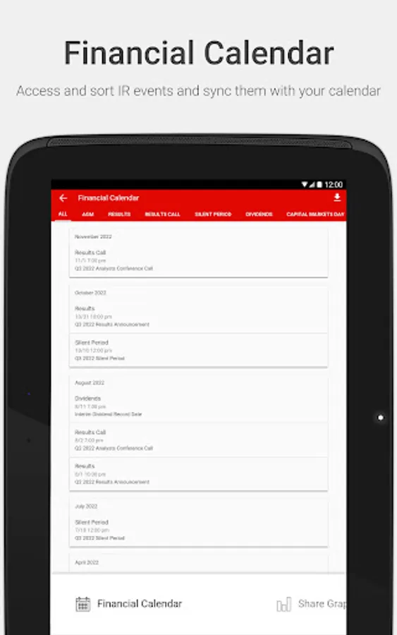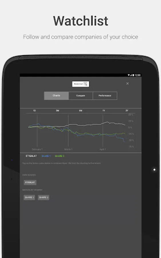 The e& Investor Relations app will keep you up-to-date with the latest share price data, stock exchange and press releases, IR calendar events and much more.