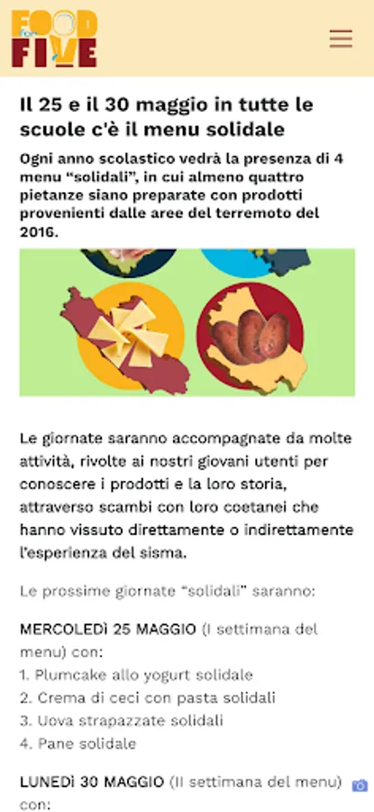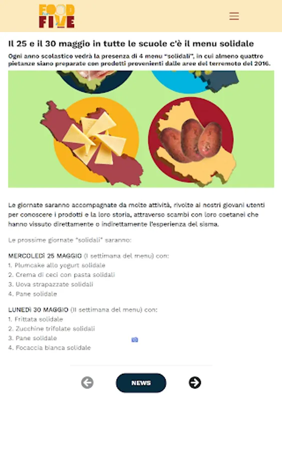 The App allows you to know what children eat in the schools of the V Municipality of Rome Capital, also providing information on the quality of the service, suggestions on other meals of the day and on correct eating habits.