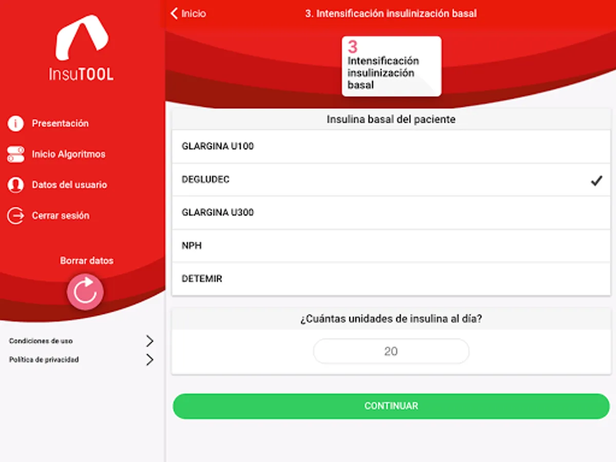InsuTOOL was born from this need, which is an application for mobile devices that in a quick and simple way will help us choose the most recommendable insulin treatment regimen for each patient and, in addition, will guide us in the adjustment of the treatment until achieving the objective of control desired.