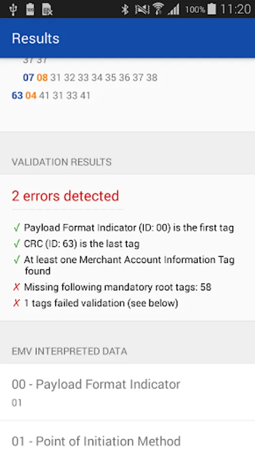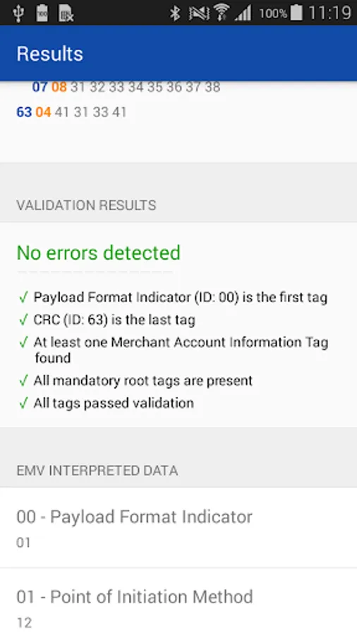 This app will decode QR Codes that are compliant with the EMVCo specification for usage of Merchant and Consumer QR Codes in the payment business. It will show the raw data contained in the QR Code, show it as Hex Bytes and give available information for all EMV Tag found. Helps you find problems in QR Codes by highlighting parts that could not be decoded. Also does a complete analysis of Merchant Presented QR Codes to highlight missing tags, tags with bad length or format, and Checksum value.