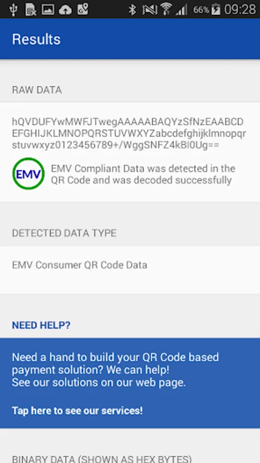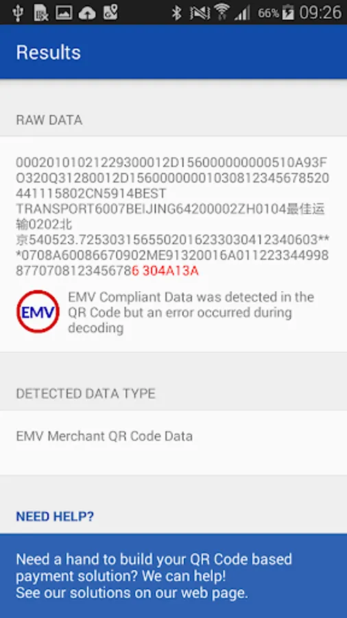 It also provides minimal support for non-EMV compliant QR Codes actions, such as opening Web Links, making phone calls, sending SMS messages, create contact cards and configure wifi settings.