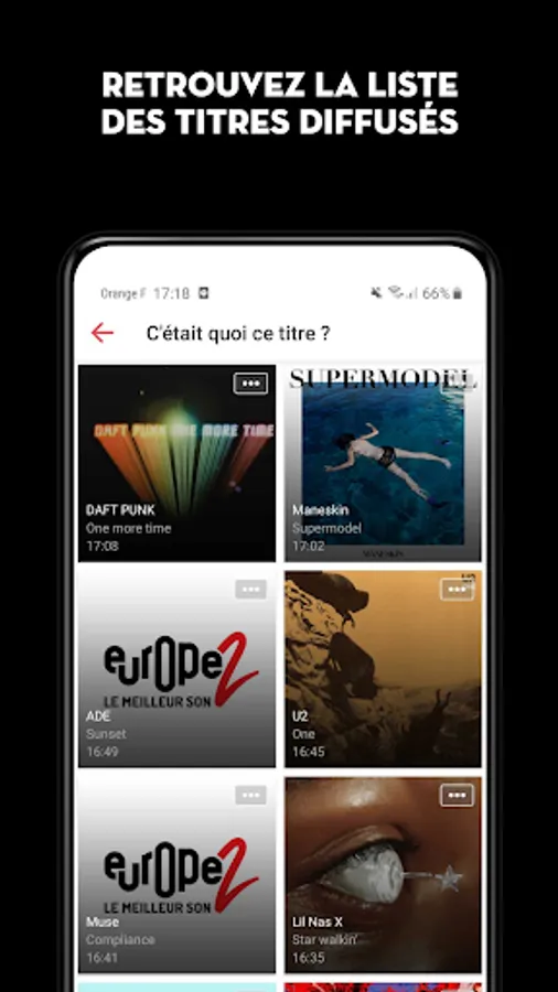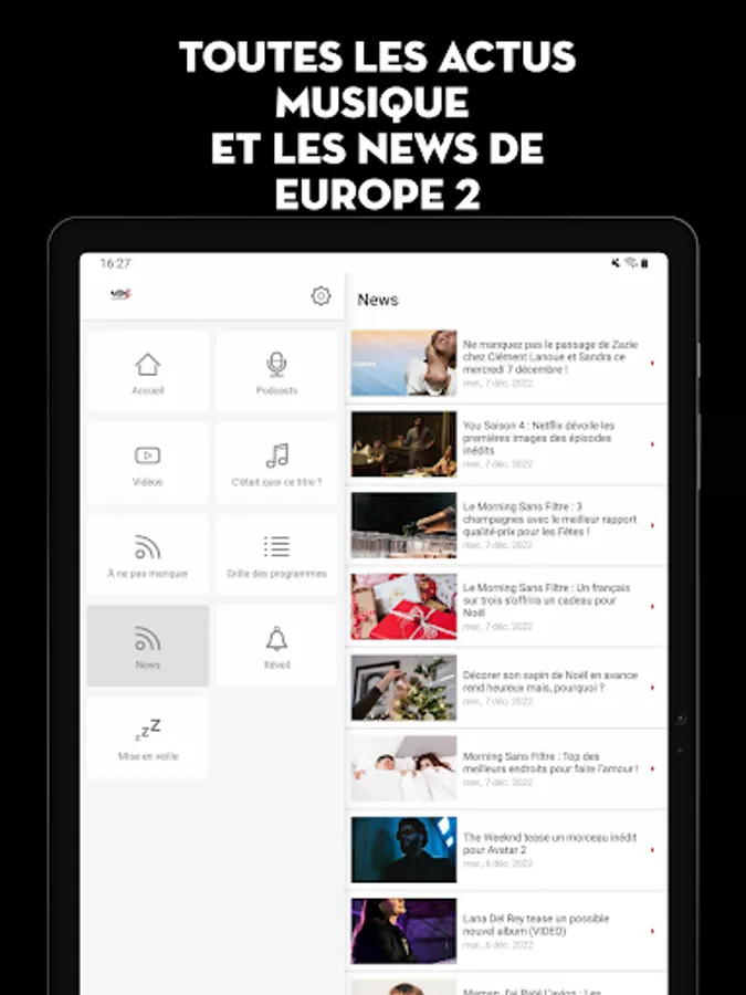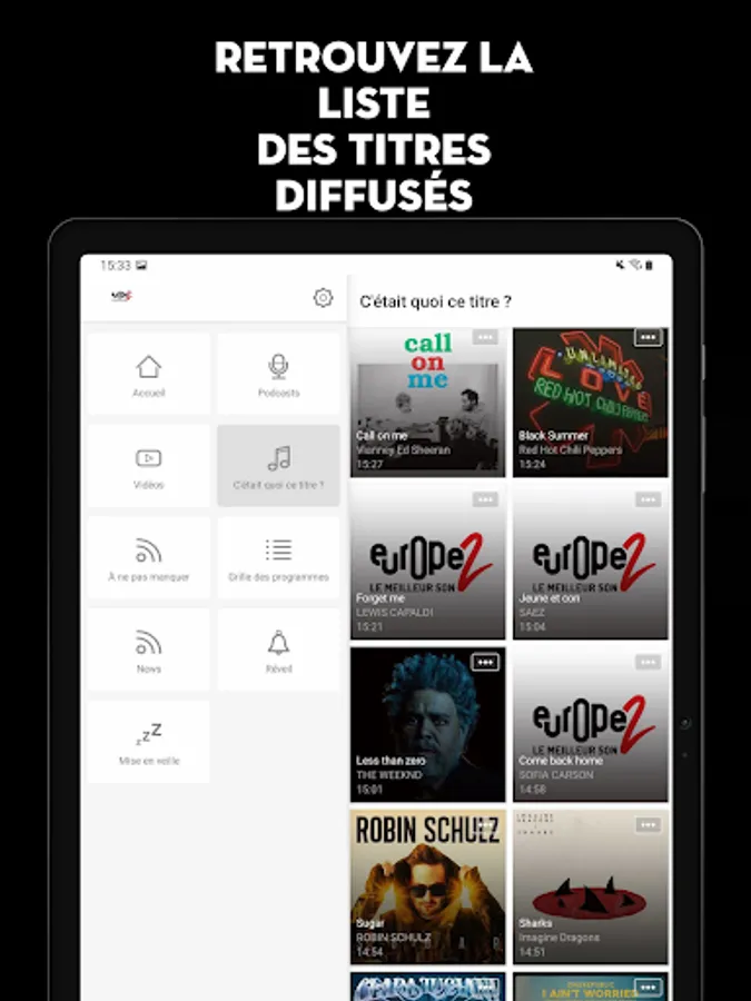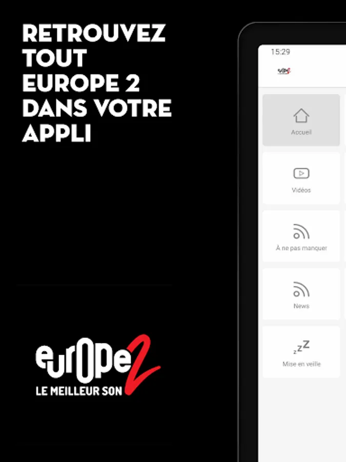 - Wake up with Europe 2 thanks to the Alarm clock function
