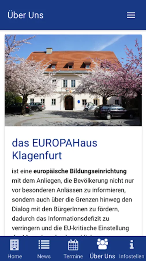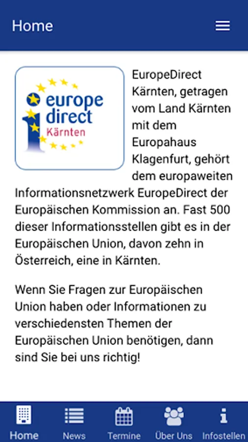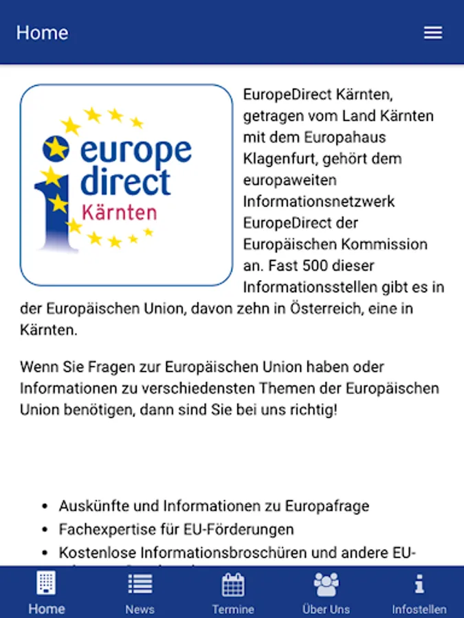 EuropeDirect Carinthia, supported by the province of Carinthia with the Europahaus Klagenfurt, is part of the pan-European information network EuropeDirect of the European Commission. Almost 500 of these information centers are located in the European Union, ten of them in Austria, one in Carinthia.