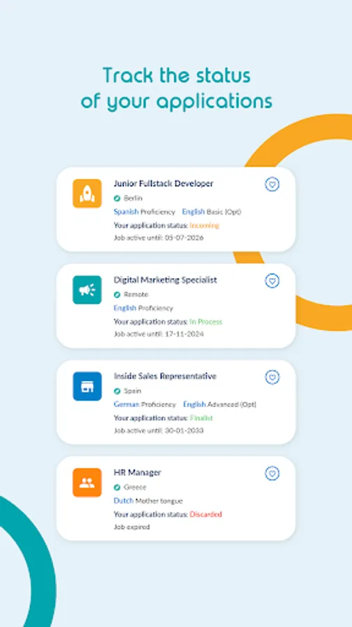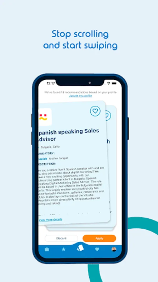 Swipe right to easily apply to job offers you find attractive. Yes, it is as easy as online dating. Swipe left to discard the vacancies you are not interested in. And don’t worry, you can always go to the “Discarded” menu to review them again.