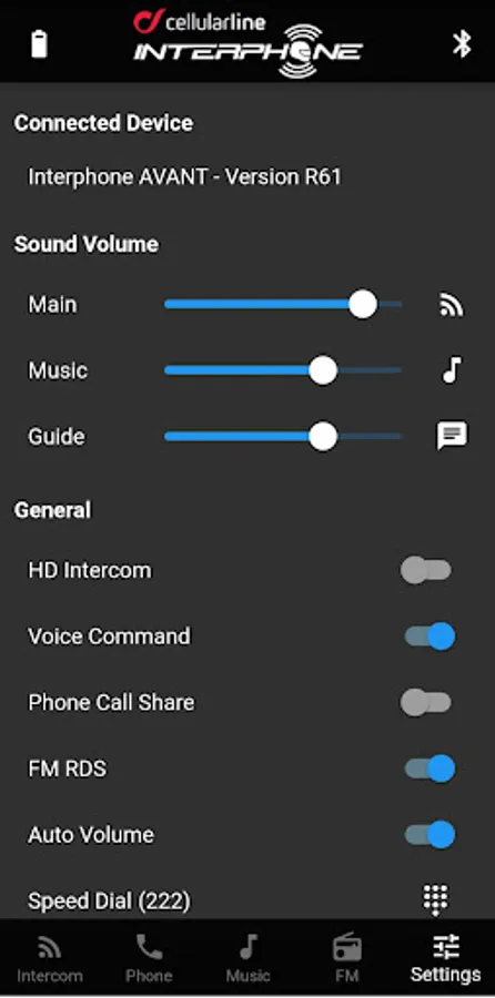 Smartphone App for Interphone Motorcycle Bluetooth Headset.