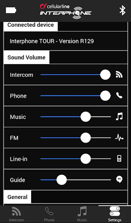 Smartphone App for Interphone Motorcycle Bluetooth Headset.