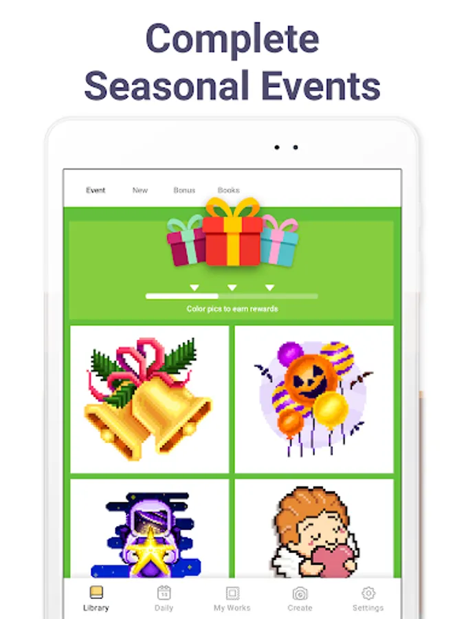 ✔ Paint by number unique images during Seasonal Events! Color by number thematic pictures and get unique bonuses. Our images are specially crafted for major seasons, holidays and festivals. Build your own collection of images from popular coloring topics, such as Christmas, Halloween, Thanksgiving, and many more.